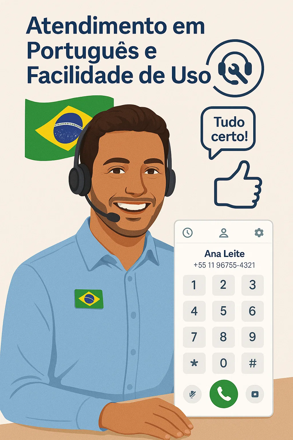 É muito fácil utilizar a telefonia. Instale nosso aplicativo e pronto! Mas se você tiver qualquer dificuldade, temos pronto atendimento em português para ajudar.
