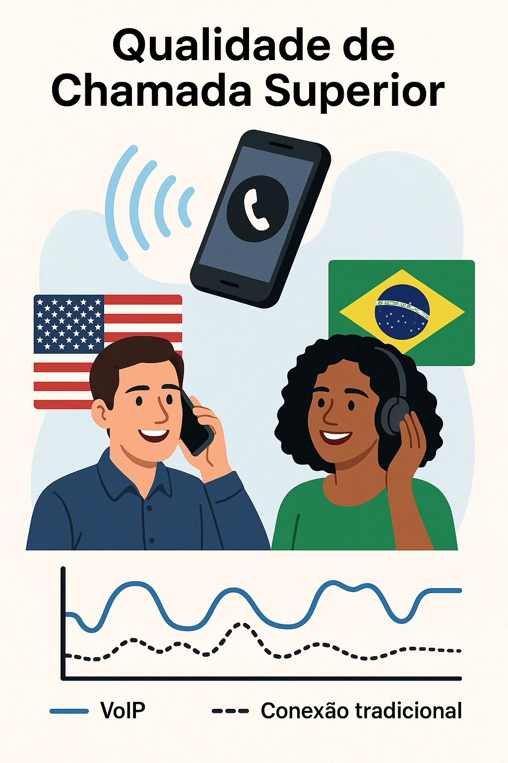 Não se preocupe com a qualidade. Nossa estrutura de telecomunicações oferece o que há de melhor para que a qualidade seja perfeita. Fale como se você estivesse no Brasil.